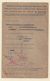 Charley was working as a Druggist in Winnipeg when he volunteered at the outbreak of the war.  Because of this, his postings over the next 4 years would be very specific to managing and dispensing Canadian Medical Stores.  This is his first letter home since October 31st and the only Field Service Post Card that exists in the 88 letter collection.